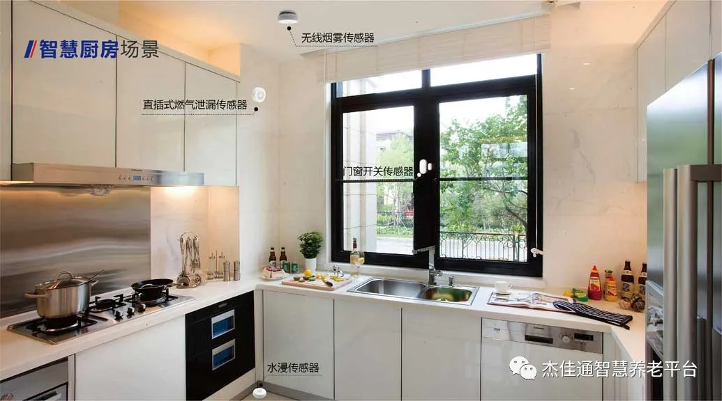 在廚房中安裝煙霧探測器和燃氣泄漏探測器,防止意外事故的發生。
