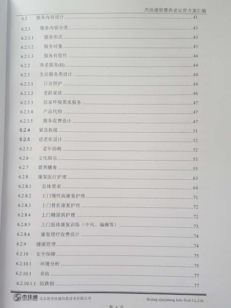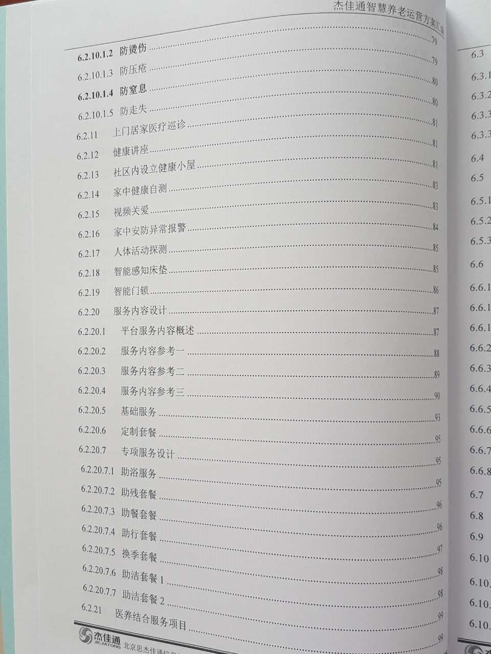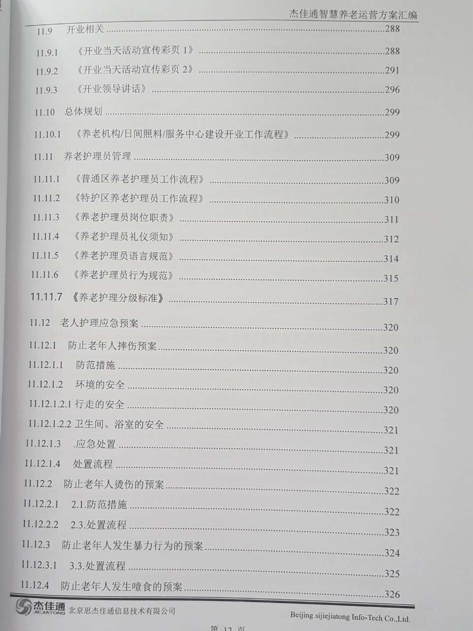 杰佳通專注智慧養老平臺15年,基于多年養老平臺開發經驗,和幾百家客戶運營經驗,編制了七百多頁的《智慧養老平臺運營匯編》(還在陸續完善中),供我們的客戶實操參考,幫助客戶少走彎路,快速盈利。
