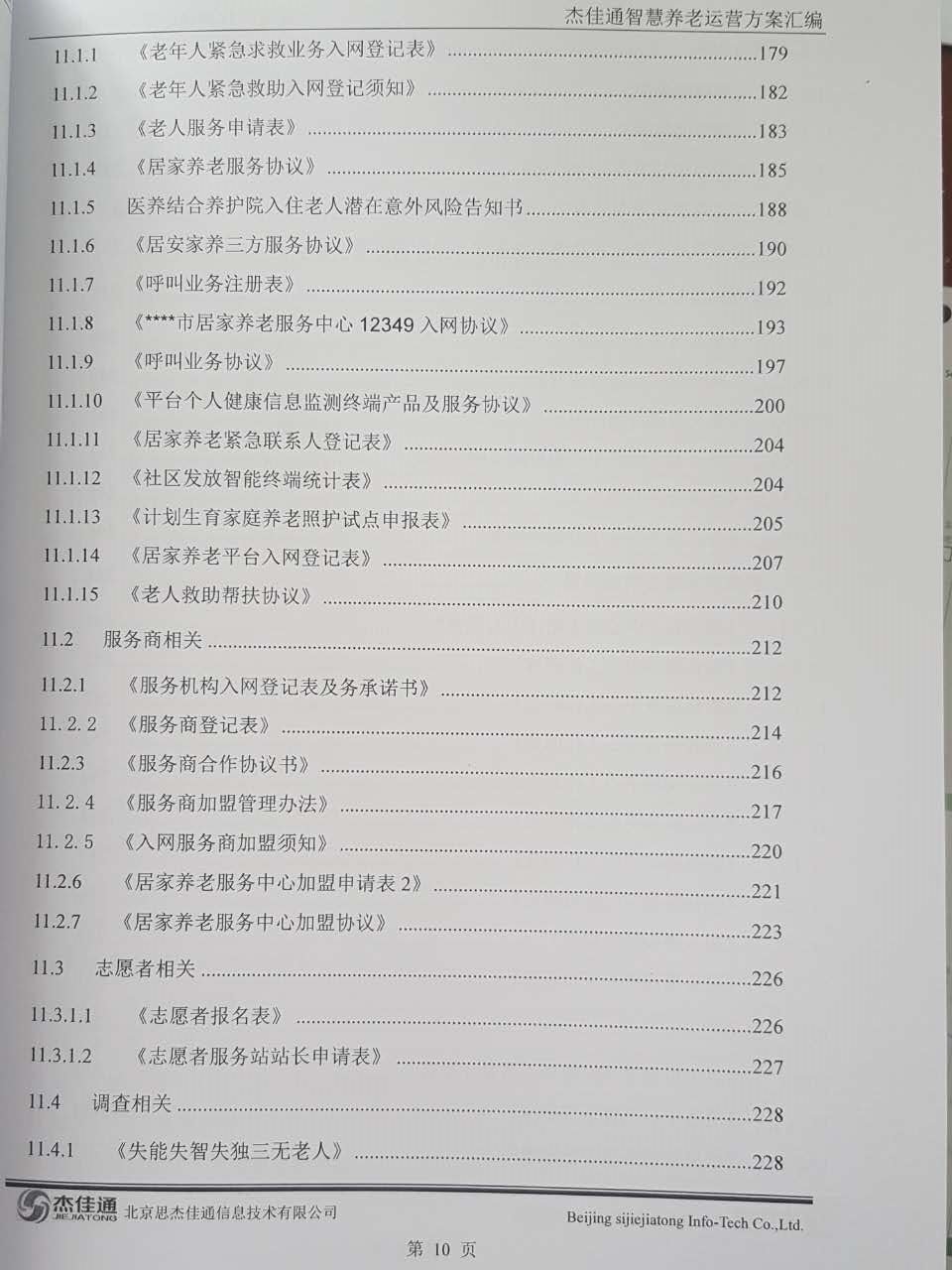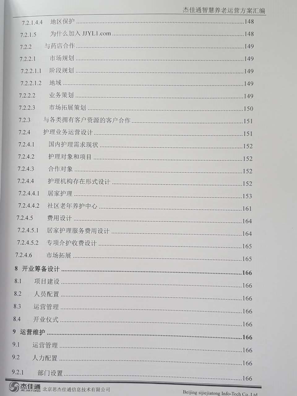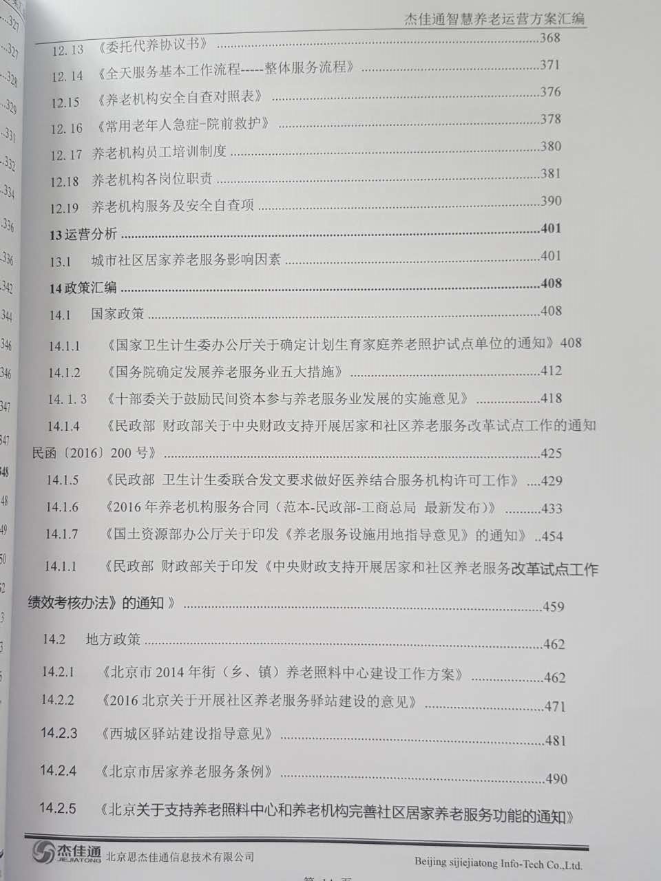 杰佳通專注智慧養老平臺15年,基于多年養老平臺開發經驗,和幾百家客戶運營經驗,編制了七百多頁的《智慧養老平臺運營匯編》(還在陸續完善中),供我們的客戶實操參考,幫助客戶少走彎路,快速盈利。